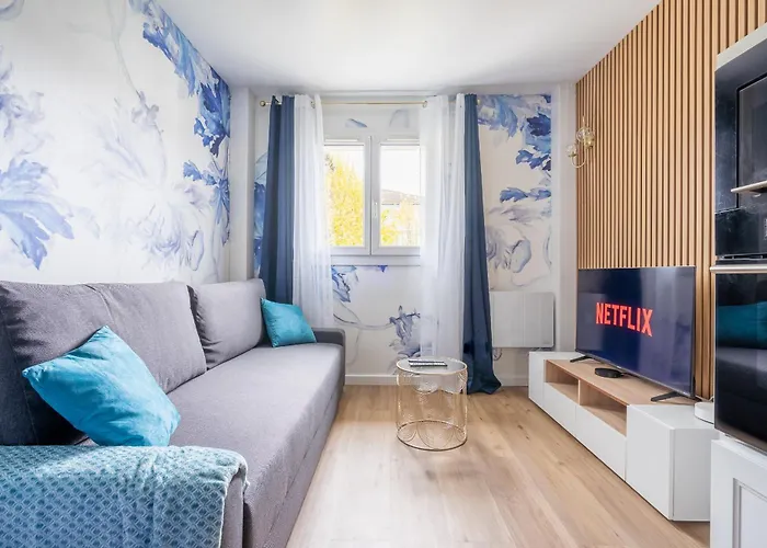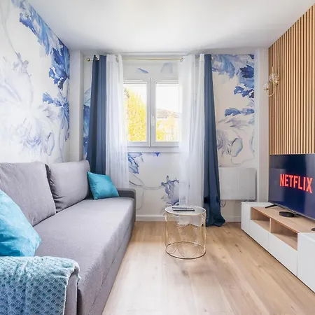 East-Blue Appartement-Luxury Bussy-Saint-Georges розташовані в Бюссі-Сен-Жоржі, за 40 км від аеропорту Париж Орлі. Апартаменти розташовані в межах 5-хвилинної прогулянки від залізничного вокзалу Bussy-Saint-Georges та за 5 хвилин пішої прогулянки від автовокзалу Palissy.